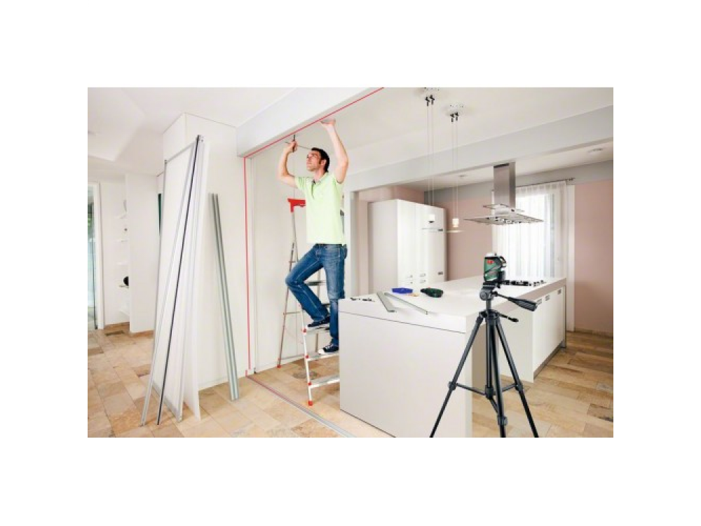Простое позиционирование лазерного луча на любой высоте с помощью универсального держателя или алюминиевого штатива высотой 1,5 м