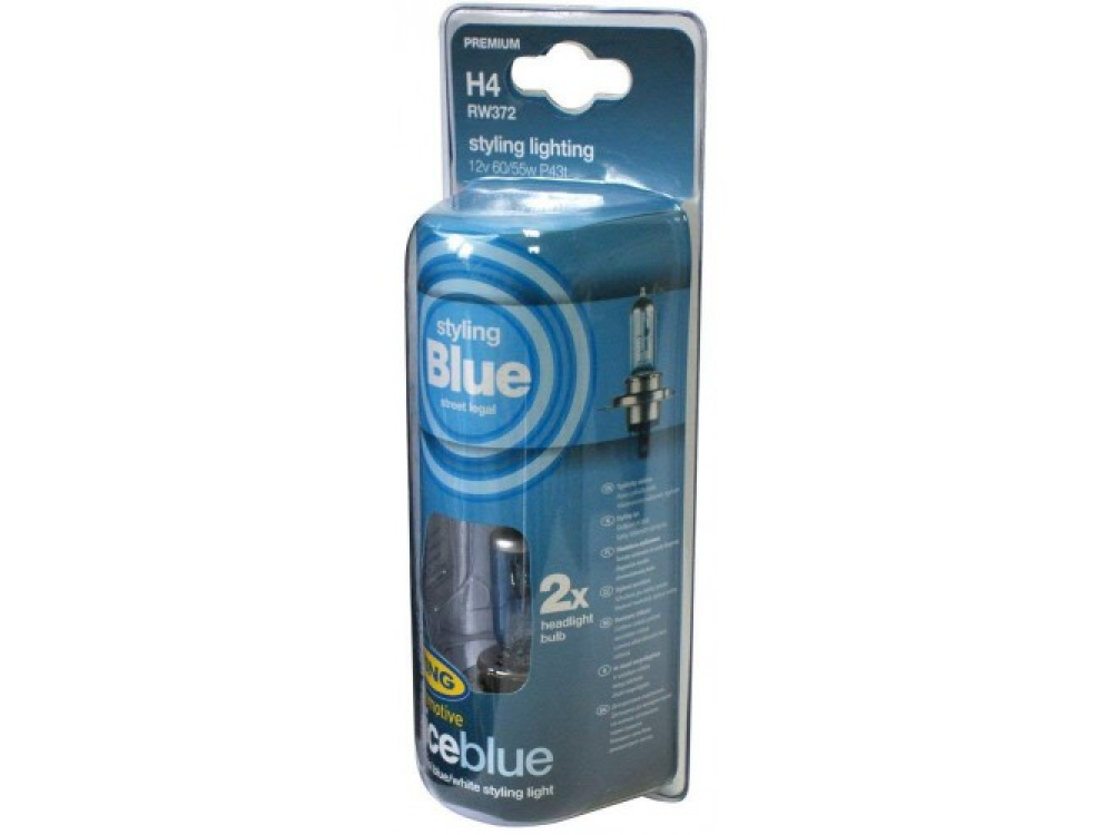 Автолампа ICE BLUE в пластиковой упаковке (по 2 шт): 12 вольт, мощность 60/55W, цоколь H4 (P43t)