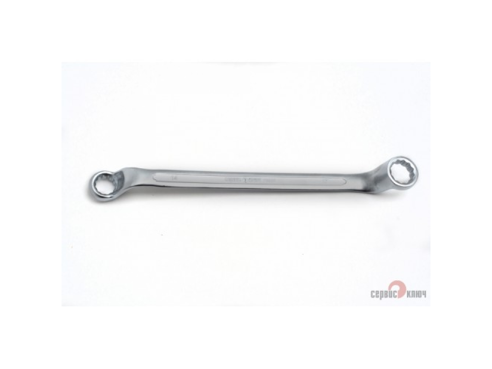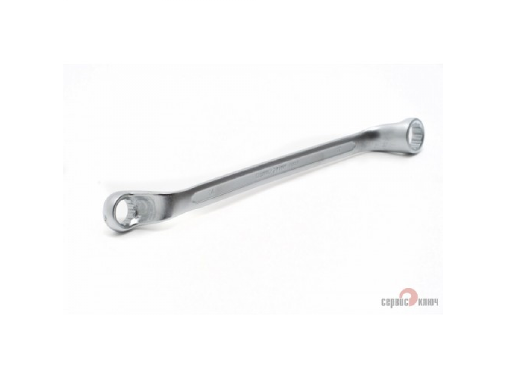 Двусторонний накидной ключ со смещением. Имеет на обоих концах 12-гранные накидные профили. Накидной профиль со смещением предоставляет более широкие возможности при работе в ограниченном пространстве. Изготовлен из высококачественной хромованадиевой (Crv) стали методом холодного штампа, тверность 40-45 HRC.