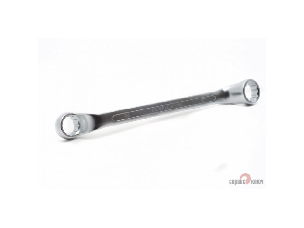 Двусторонний накидной ключ со смещением. Имеет на обоих концах 12-гранные накидные профили. Накидной профиль со смещением предоставляет более широкие возможности при работе в ограниченном пространстве. Изготовлен из высококачественной хромованадиевой (Crv) стали методом холодного штампа, тверность 40-45 HRC.