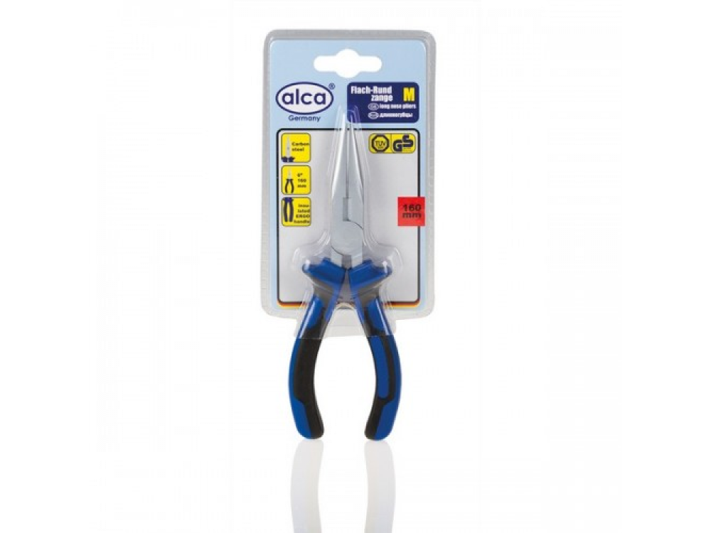 Длинногубцы 160 мм. Карбоновая сталь твердости; HCR 42-48. Режущие кромки: HCR 55-65. Изолированные эргономичные ручки.