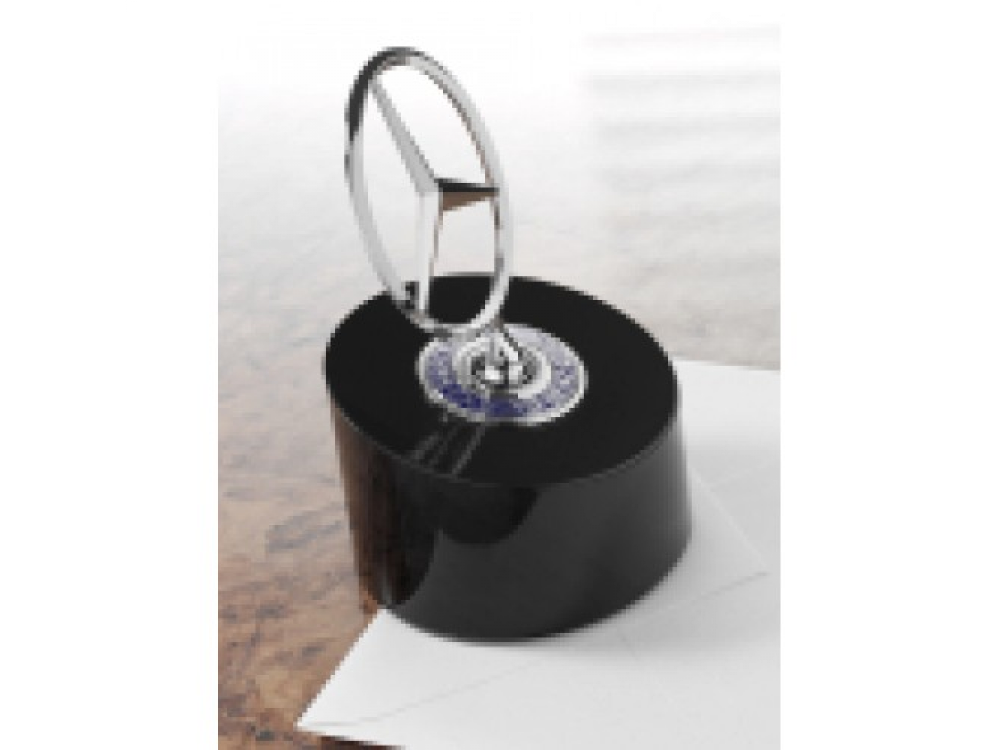 Элегантное пресс-папье станет благородным аксессуаром любого письменного стола. На алюминиевой подставке черного цвета возвышается знаменитая звезда. Это оригинальная звезда «Мерседес-Бенц», которая устанавливается на капоте автомобиля. Подставка из алюминия. Размер: 9 x 9 x 15,5 см. Артикул: B6 695 1725