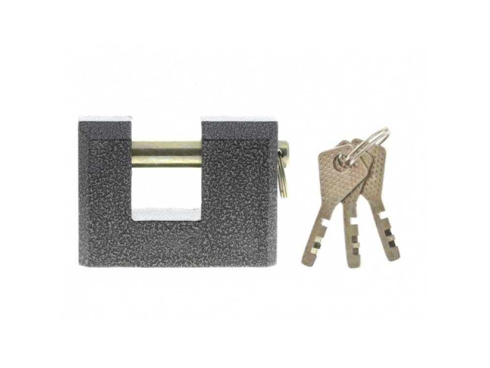 Легкий с прочным корпусом навесной замок. Имеет заглубленный прямой стальной засов, что значительно затрудняет возможность взлома замка. Удобен для использования в стесненном пространстве. В комплекте 3 ключа.